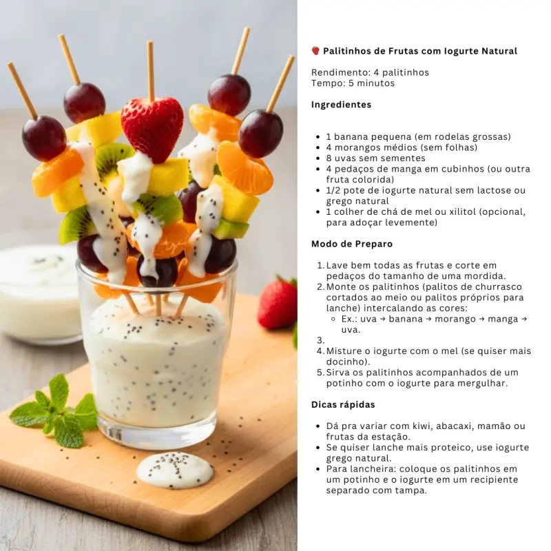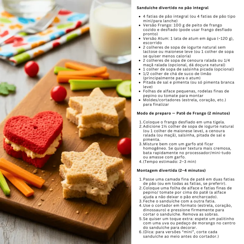 Um guia exclusivo que combina pré-preparos inteligentes + truques de sabor irresistível. Com ele, qualquer Mãe consegue transformar ingredientes simples em lanches nutritivas que as crianças adoram, gastando apenas 10 minutos do dia.